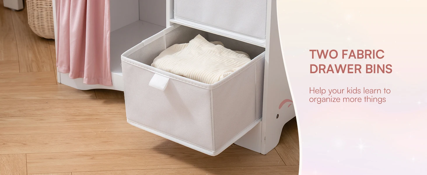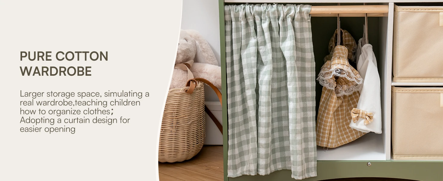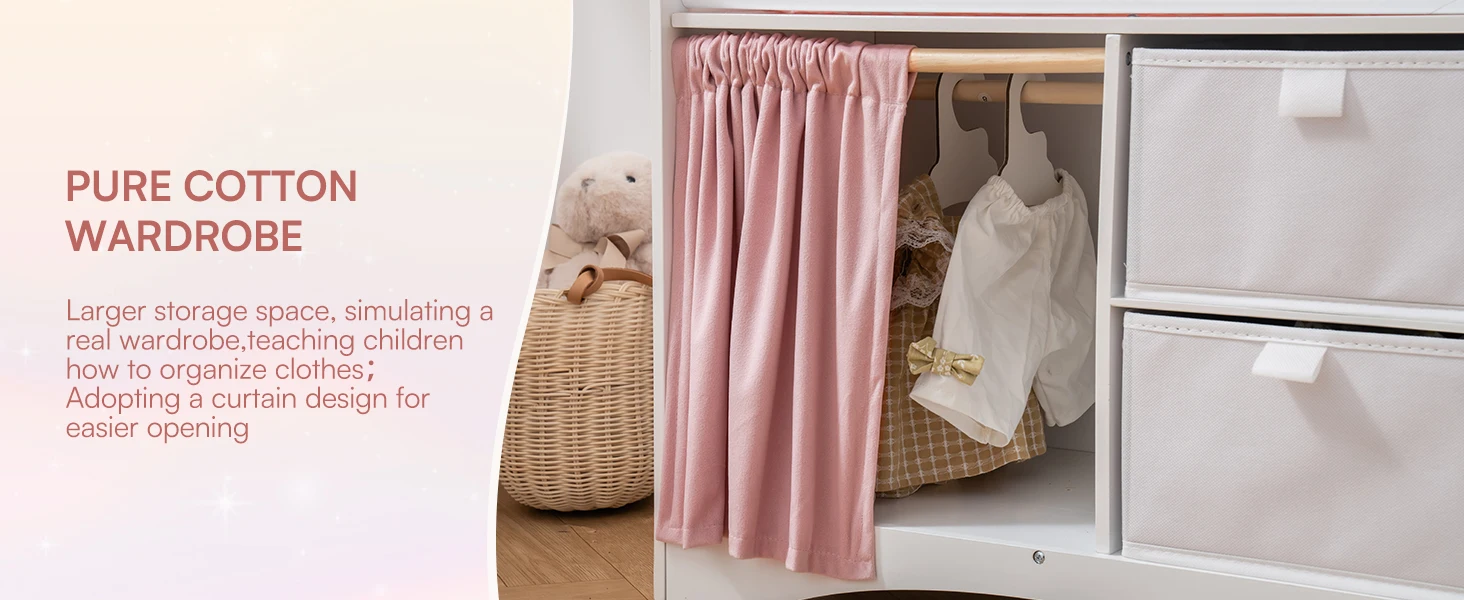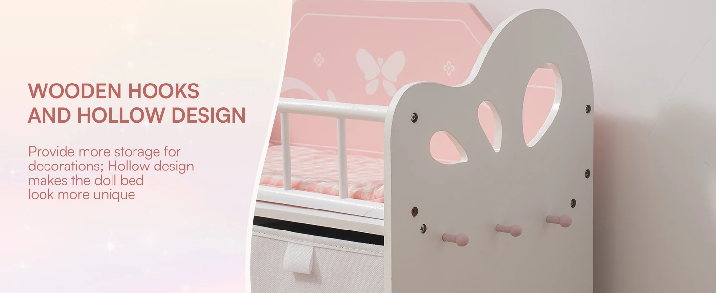 Give your child the ultimate pretend play experience with this versatile baby doll crib set—a crib, changing table, and wardrobe all in one! Thoughtfully designed with multiple storage areas for doll clothes, toys, and pretend baby essentials. The set includes 2 fabric baskets and 3 wooden hooks, making it easy for little ones to organize accessories and learn tidiness through play.