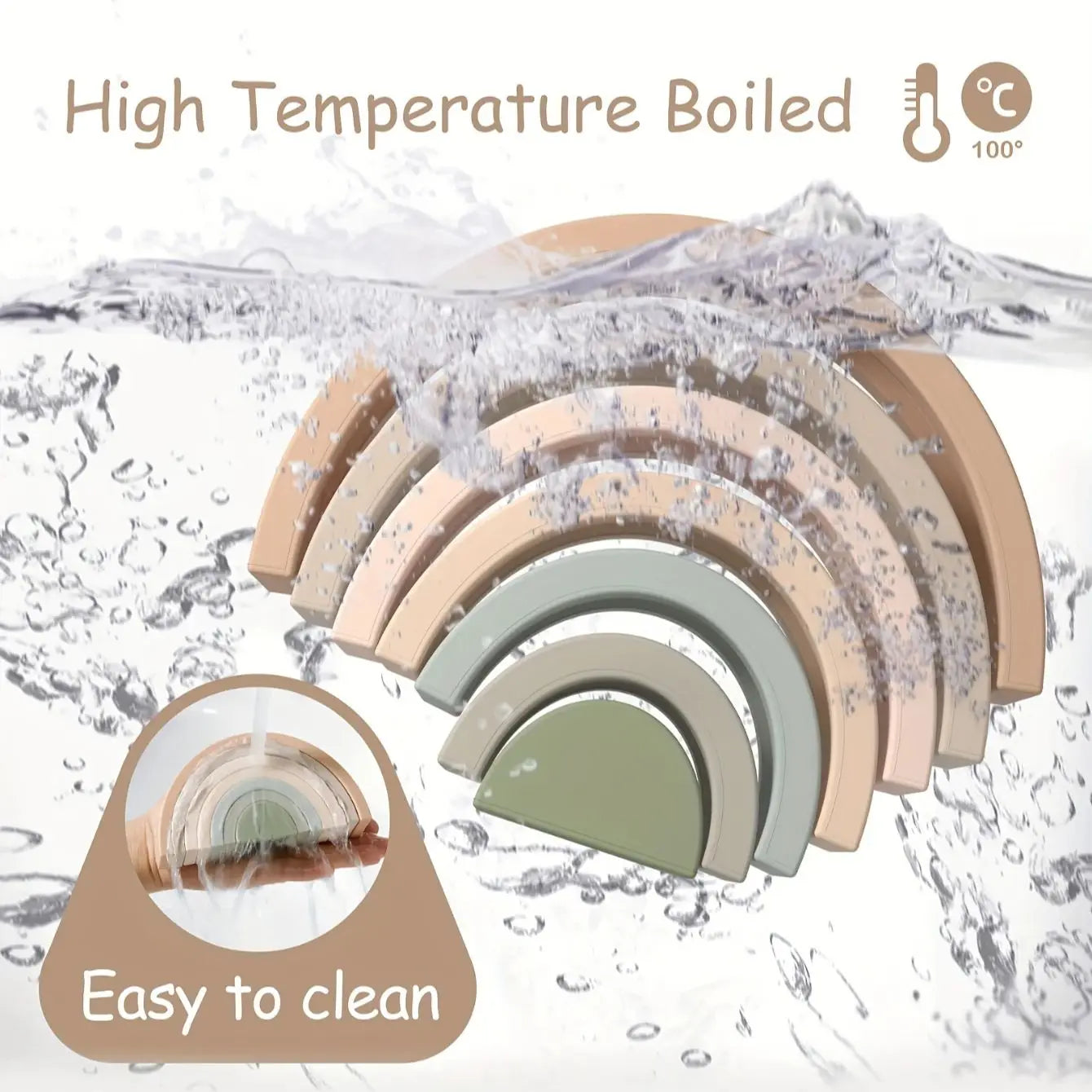 TYRY.HU 1Set Baby Toy Rainbow Silicone Building Block Baby Silicone Teether BPA Free Soft Silicone Block Educational Toys Kid Gifts